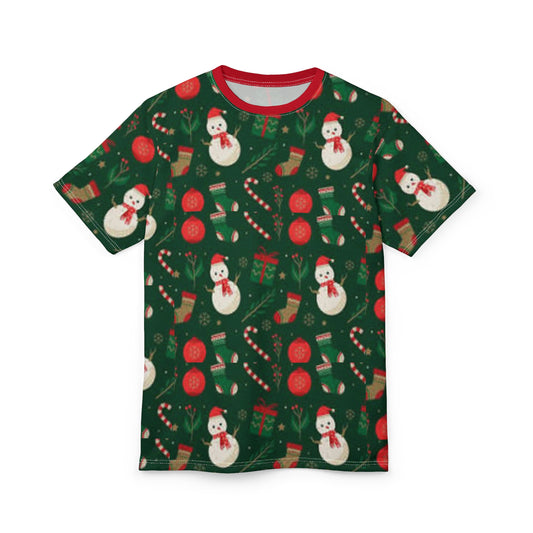 Christmas Snowman Pattern Tee — Holiday All-Over-Print Shirt